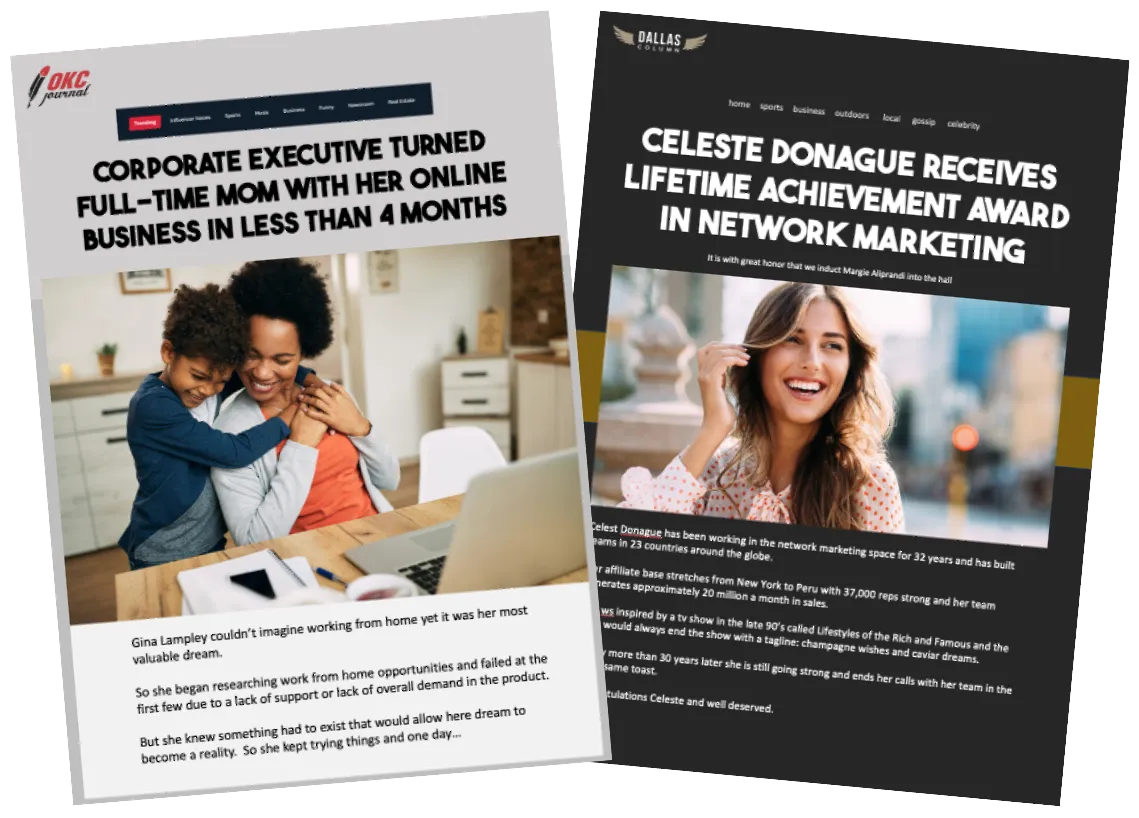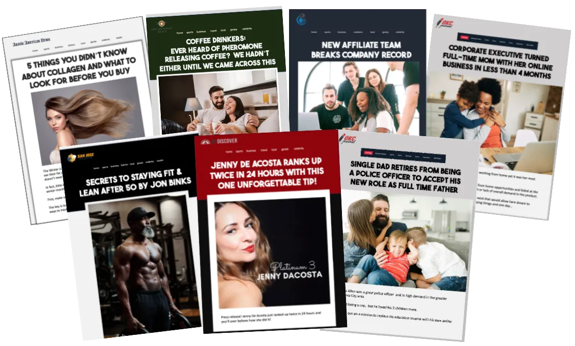 Drive qualified clients to your website by publishing on high-traffic news sites. Each publication acts as a landing page to warm up leads to your brand before clicking through to your site, ordering from you, or joining your team!